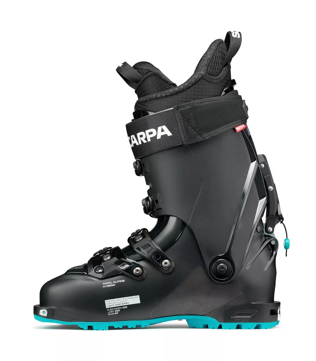 КОНСТРУКЦИЯ: Новата хибридна конструкция Alpine Axial се състои от комбинация от език и каишка, свързани от медиалната страна на черупката, която осигурява прецизно прилягане в средната част на стъпалото и в областта на петата и е подходяща за най-различни типове и размери стъпала. Тази конструкция позволява прилягането и прецизността на класическата конструкция на ски обувки с припокриване, като същевременно позволява по-лесно влизане в обувката, а също така дава възможност за отлично предаване на импулсите при завиване и несравним контрол.