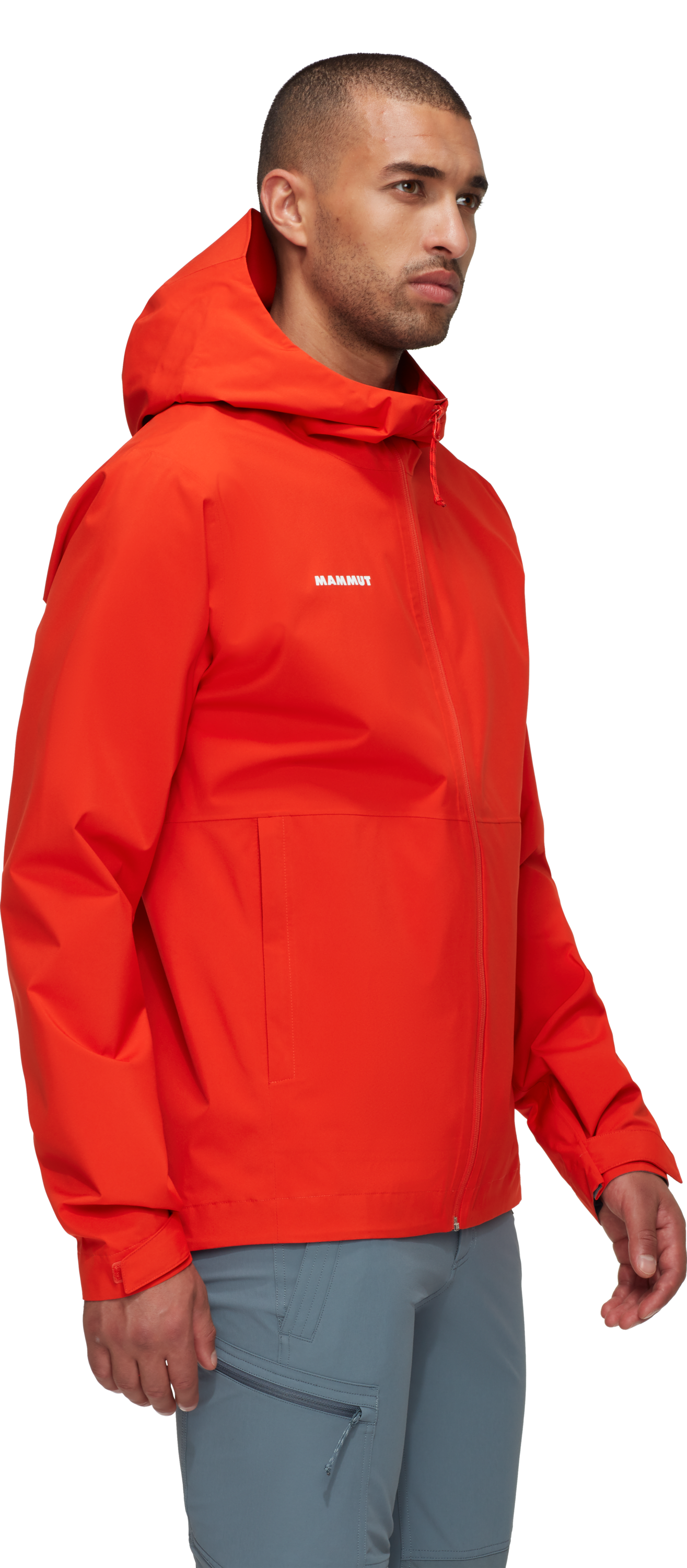 Якето е изработено с 2-слоен Mammut DRY Tour ламинат, който осигурява стабилна защита от атмосферни влияния. Материята е ветроустойчива, а водният стълб от 10 000 mm и дишаемостта от 10 000 g/m²/24h допринасят за добър баланс между защита и комфорт при носене. Допълнителната PFC-free DWR обработка помага външният слой да отблъсква влагата по-ефективно.