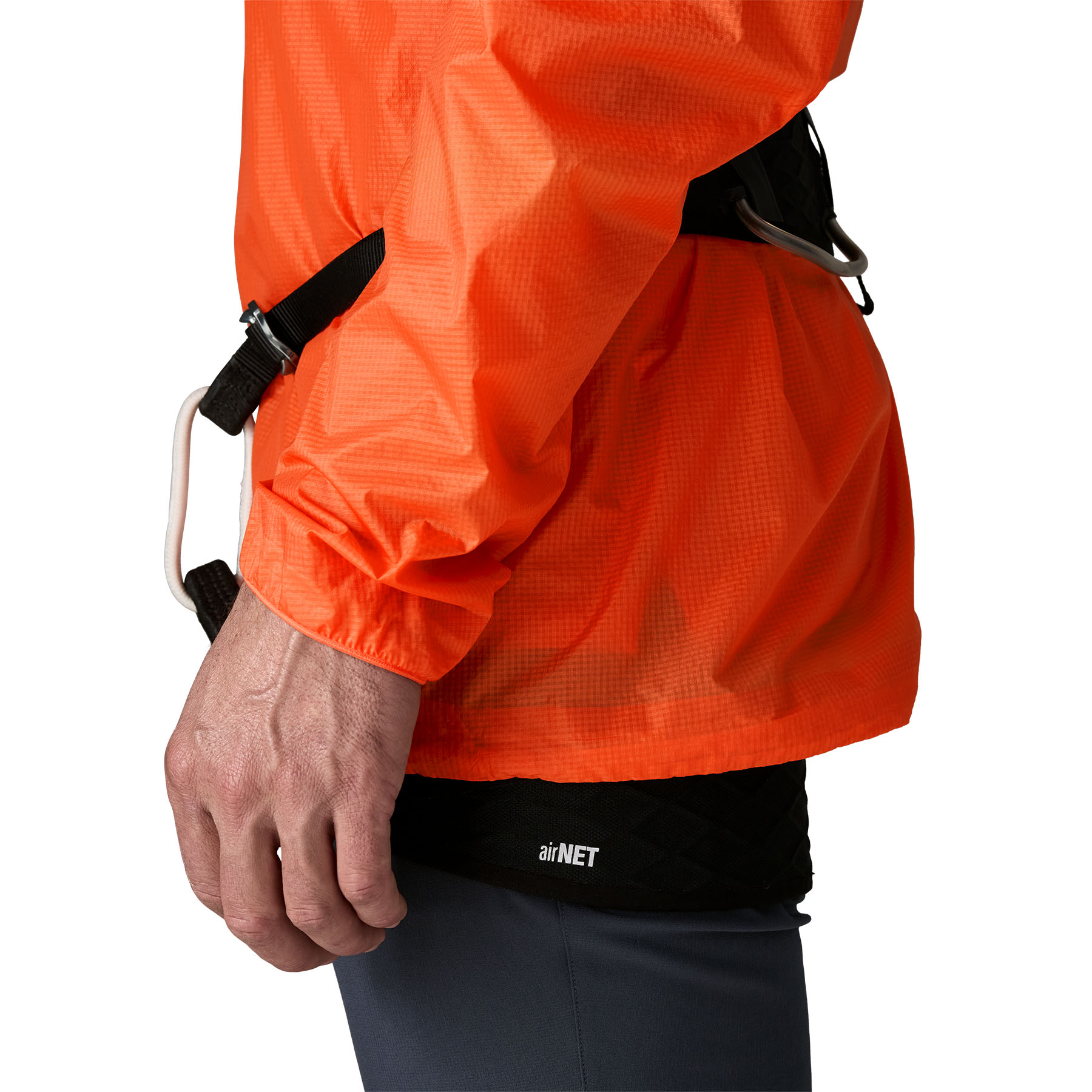 Качулка съвместима с каска и лесно сваляне – регулируема в две посоки, може да се сложи или свали с една ръка, дори когато якето е напълно закопчано. Тясната, катераческа кройка осигурява допълнително пространство в раменете за свобода на движение над главата, а дългият централен цип позволява лесно обличане и събличане или бързо проветряване при интензивно катерене.